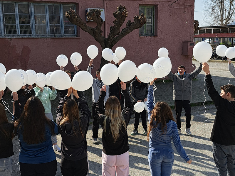 Επιπρόσθετα στα κάγκελα του αύλειου χώρου του σχολείου, οι μαθητές/τριες κρέμασαν μπαλόνια με συνθήματα κατά της βίας και του σχολικού εκφοβισμού και στη συνέχεια συγκεντρώθηκαν στο κέντρο της αυλής σπάζοντας ταυτόχρονα από ένα μπαλόνι, συμβολίζοντας έτσι το σπάσιμο της σιωπής .
