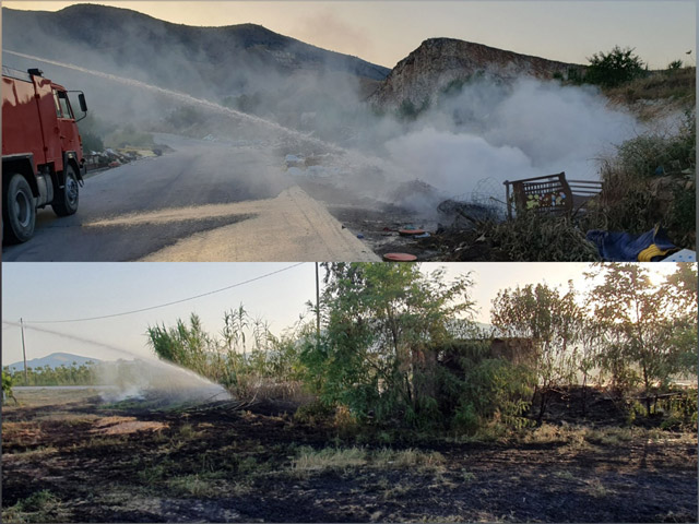 Η πρώτη εστία έκαιγε ξερά χόρτα στο δρόμο προς Δελέρια και απείλησε για λίγη ώρα αμπέλια και οπωροφόρα ενώ η δεύτερη ξέσπασε σε χωματερή στο Νταμάρι του Λατομείου. Και στις δύο επιχείρησε η υδροφόρα του Δήμου Τυρνάβου και ένα πυροσβεστικό όχημα με δύο άντρες.