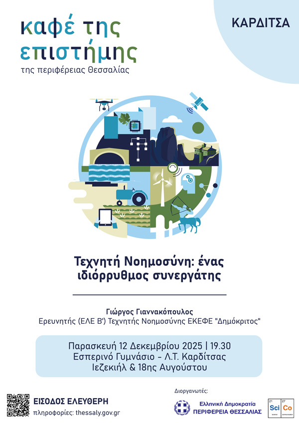 Παρασκευή 12 Δεκεμβρίου 2025, 19:30 – Εσπερινό Γυμνάσιο – Λ.Τ. Καρδίτσας «Τεχνητή Νοημοσύνη: ένας ιδιόρρυθμος συνεργάτης»