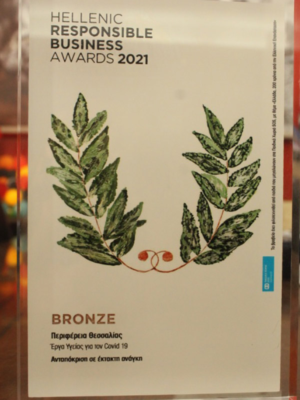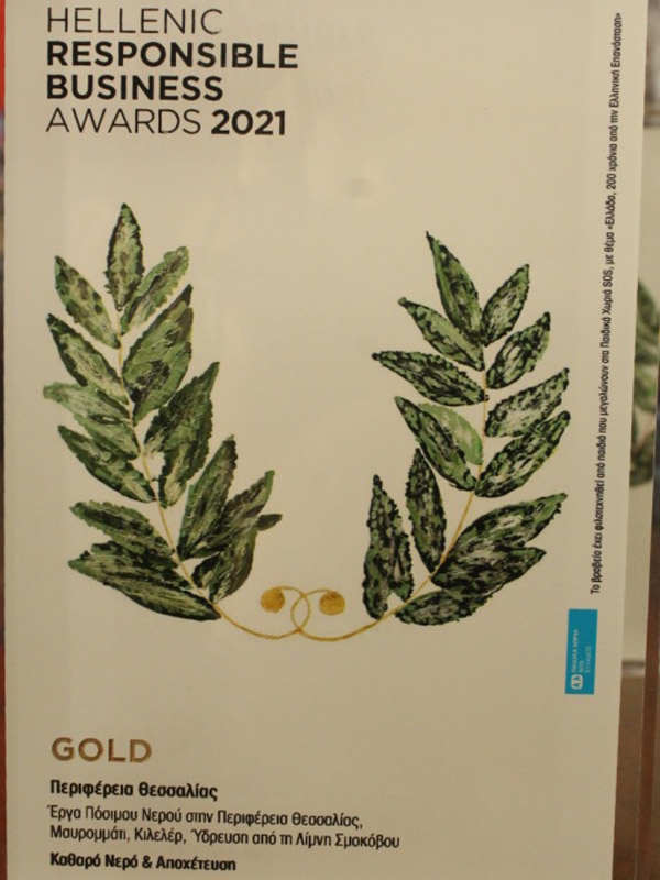 Δύο βραβεία στην Περιφέρεια Θεσσαλίας από τα Hellenic Responsible Business Awards 2021 για έργα πόσιμου νερού και διαχείριση covid-19