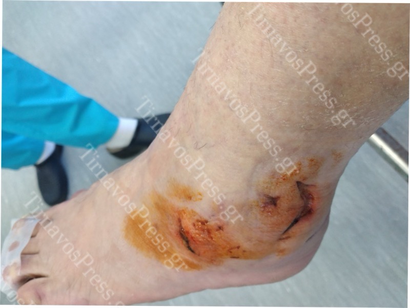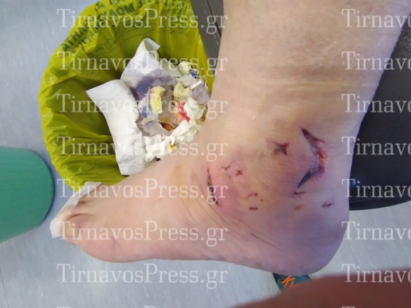Όσο για το πως είναι η κατάσταση της αυτή τη στιγμή, λέει, «Τέσσερις τρύπες έχω και η μία που ήταν πιο μεγάλη δεν έχει κλείσει ακόμα. Έχω ακόμη τον επίδεσμο στο πόδι και κάθε μέρα πηγαίνω στο Κέντρο Υγείας Τυρνάβου και κάνω αλλαγή. Από τότε δεν άλλαξα παπούτσι, φοράω ακόμη την ίδια παντόφλα γιατί είναι πρησμένο. Παίρνω κανονικά αντιβίωση πρωί βράδυ και ακόμη κουτσαίνω. Όταν έχω πόνο γιατί έχω πόνο αφού δεν έκλεισε ακόμη η πληγή, δεν έβαλαν ούτε τσιμπιδάκια, ούτε ράμματα, μου είπανε να παίρνω ένα χιλιάρι ντεπόν. Πρέπει επίσης να μην το μουσκέψω και να μην το κουράζω. »