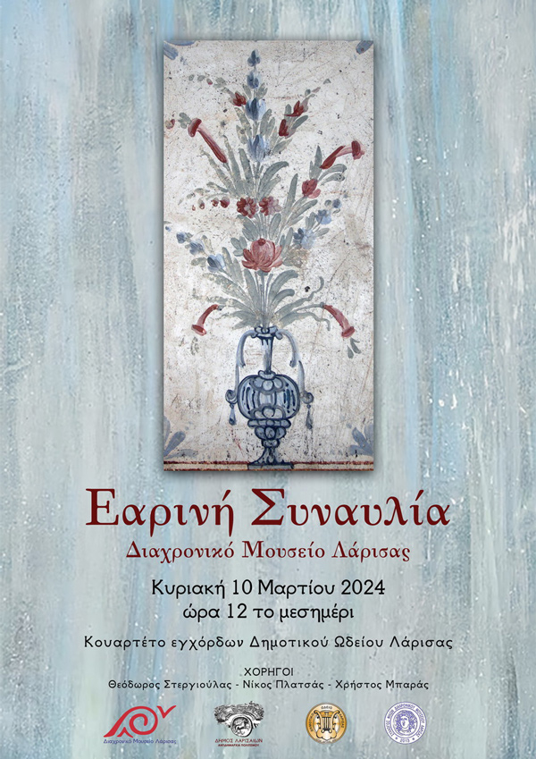 Η εκδήλωση θα πραγματοποιηθεί στην αίθουσα των ψηφιδωτών του Μουσείου με την υποστήριξη του Συλλόγου Φίλων του Διαχρονικού Μουσείου Λάρισας.