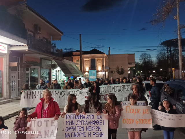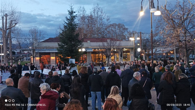 Ειρηνική διαμαρτυρία οργανώθηκε στον Αμπελώνα από συλλόγους της περιοχής για τα θύματα της τραγωδίας των Τεμπών.