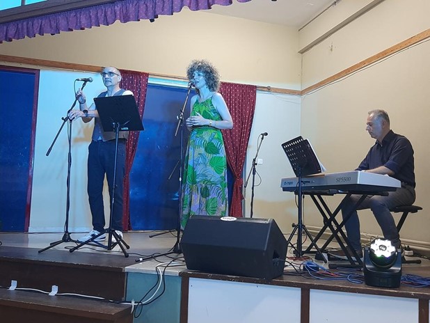 πιάνο – διεύθυνση παιδικής χορωδίας Ροδόπη Τσόκανου, μπουζούκι, Βαγγέλης Τσιαπλές