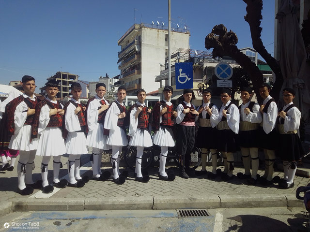 Οι μαθητές/τριες του 1ου Γυμνασίου Τυρνάβου υπό τη διδασκαλία και την καθοδήγηση της καθηγήτριας Φυσικής Αγωγής Αικατερίνης Βαλδούμα με τους χορούς και το τραγούδι τους από τη Θράκη, την Πελοπόννησο, την Θεσσαλία και την Ήπειρο θέλησαν να χαιρετίσουν αυτό το θαύμα που οδήγησε ένα ολόκληρο Έθνος προς την ΕΛΕΥΘΕΡΙΑ.