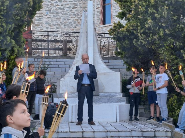 Έπειτα, ο Δήμαρχος Τεμπών σε σύντομη ομιλία του, αναφέρθηκε στην εξόντωση των Ελλήνων, Χριστιανών του Πόντου από τους Τούρκους και στον συνεχή αγώνα για να αναγνωρισθεί από την Διεθνή Κοινότητα, ως γενοκτονία, ο σφαγιασμός και οι θηριωδίες των Τούρκων κατά των Ποντίων. Μετά, όλοι μετέβησαν στην πλατεία “Ζήση Λιούπα”, όπου οι μαθητές άναψαν τα φαναράκια τα οποία υψώθηκαν στον ουρανό.