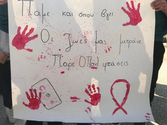 Οι Μαθητές/τριες ετοίμασαν πανό, έγραψαν συνθήματα, διάβασαν κείμενα και ποιήματα. Σε εξωτερικό τοίχο του Σχολείου αποτύπωσαν την αποφράδα ημέρα και απεικόνισαν με τον δικό τους τρόπο τη μοιραία σύγκρουση. Ρίγη συγκίνησης προκάλεσαν το ποίημα που έγραψαν οι Μαθήτριες του Σχολείου Νταβαρούκα Κων/να και Σερεμέτη Παρασκευή, καθώς και το μοιρολόγι που ακούστηκε από το κλαρίνο του Μαθητή Γκανάτσιου Χρήστου.