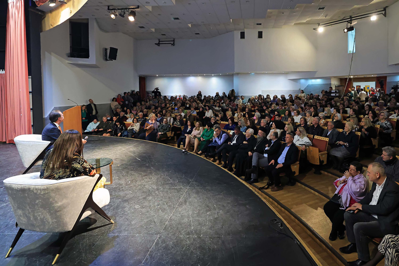 Η εκδήλωση πραγματοποιήθηκε με αφορμή την ημέρα της Γυναίκας στις 8 Μαρτίου και η Βίκυ Φλέσσα ανέπτυξε το θέμα σε ένα ζωντανό διάλογο πάνω στη σκηνή με το δημοσιογράφο Σωτήρη Πολύζο. Λίγο νωρίτερα στο χαιρετισμό του ο Περιφερειάρχης Θεσσαλίας Δ. Κουρέτας τόνισε ότι είναι σημαντικό τους ανθρώπους της ζωής μας να τους τιμούμε όσο βρίσκονται στη ζωή και κάθε μέρα. Ο ίδιος μίλησε για τις γυναίκες της δικής του ζωής. «Είμαι πια βέβαιος ότι χωρίς αυτές δεν θα είχα καταφέρει τίποτα απ’ όσα έκανα στη διαδρομή μου» είπε χαρακτηριστικά ο κ. Κουρέτας.
