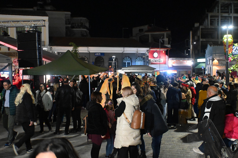 Στην συνέχεια τα πάρτι στα μαγαζιά της πόλης πήραν φωτιά με εκατοντάδες ανθρώπους κάθε ηλικίας να χορεύουν στους ρυθμούς της Αποκριάς ντυμένοι με τις πιο ευφάνταστες στολές.