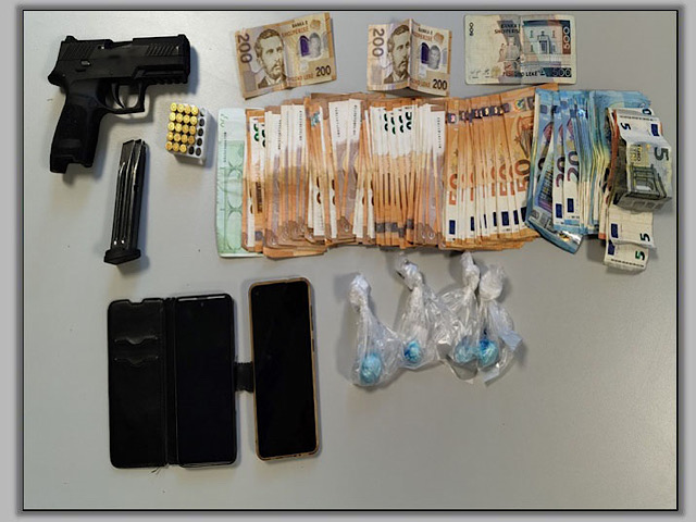 Ειδικότερα, μετά από κατάλληλη αξιοποίηση στοιχείων, διενεργήθηκε νομότυπη έρευνα στην οικία του, κατά την οποία βρέθηκαν συνολικά και κατασχέθηκαν 4 νάιλον συσκευασίες με ποσότητες κοκαΐνης, συνολικού βάρους 12,7 γραμμαρίων, 1 λειτουργικό πιστόλι, με γεμιστήρα που περιείχε 4 φυσίγγια, πλαστικό κυτίο με 15 φυσίγγια, το χρηματικό ποσό των 4.645 ευρώ, το χρηματικό ποσό των 900 Leke Αλβανίας καθώς και 2 κινητά τηλέφωνα.