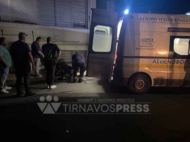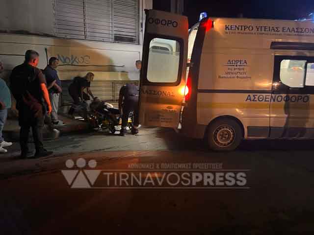 Στο σημείο έσπευσαν αστυνομικοί του Α. Τ. Τυρνάβου και ένα ασθενοφόρο που παρέλαβε τον τραυματία.