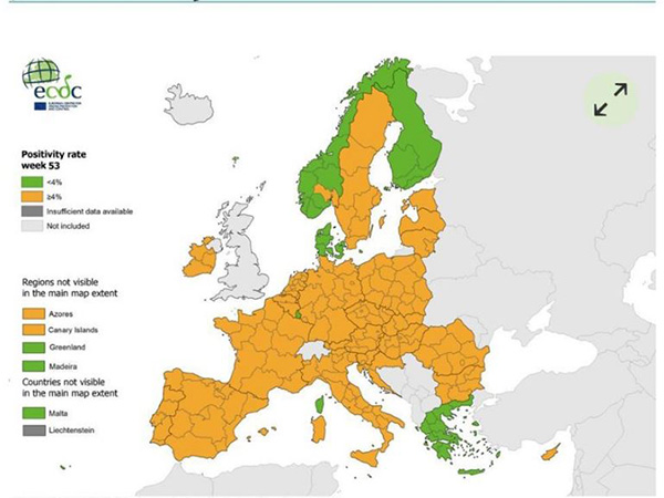 Ελλάδα Κορωνοϊός-ECDC: Κάτω από 4% ο δείκτης θετικότητας στην Ελλάδα- Ποιες περιοχές παραμένουν στο «κόκκινο»