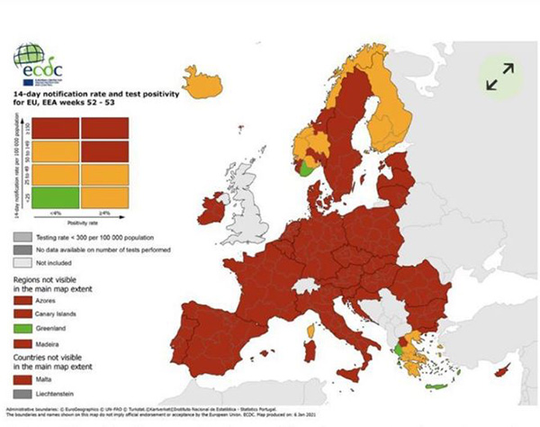 Βελτιωμένη εμφανίζεται η εικόνα της Ελλάδας αναφορικά με τη διασπορά του κορωνοϊού, σε σύγκριση με τις άλλες χώρες της Ευρωπαϊκής Ένωσης, σύμφωνα με τα στοιχεία που παρείχε σήμερα, Πέμπτη 7 Ιανουαρίου, το Ευρωπαϊκό Κέντρο Πρόληψης και Ελέγχου Ασθενειών (ECDC). Διαχρονικά, όπως προκύπτει από τα στοιχεία, η χώρα μας εμφανίζει καλύτερη εικόνα από τις περισσότερες ευρωπαϊκές χώρες και κατά το δεύτερο, σφοδρότερο και για την Ελλάδα, κύμα του κορωνοϊού.