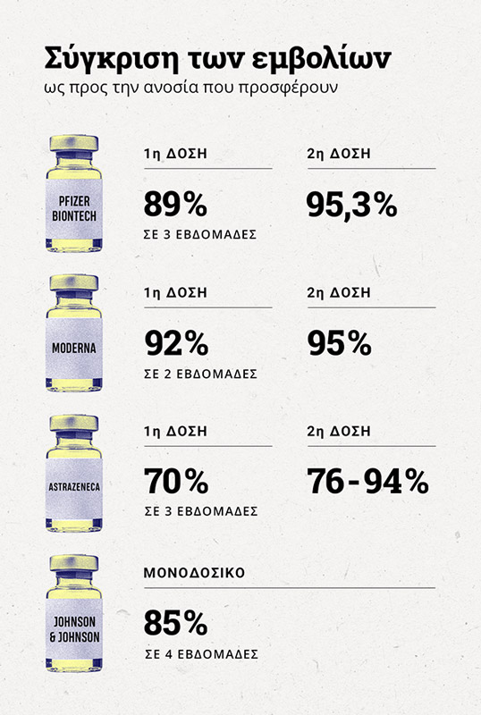 Εμβόλια και ανοσία: Τι ποσοστό εξασφαλίζουν ανά τύπο και σε πόσες μέρες