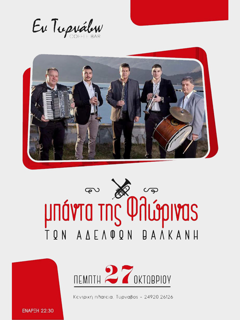 Η αγαπημένη μας μπάντα από την Φλώρινα θα γεμίσουν το Νο1 καφέ της πόλης του Τυρνάβου με μουσική. Χορός και διασκέδαση μέχρι τελικής πτώσεως σε άλλο ένα καυτό πάρτι μόνο στο Εν Τυρνάβω.
