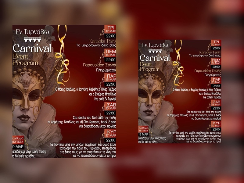 Το πρόγραμμα του Εν Τυρνάβω έως και την Καθαρά Δευτέρα 18/3:
