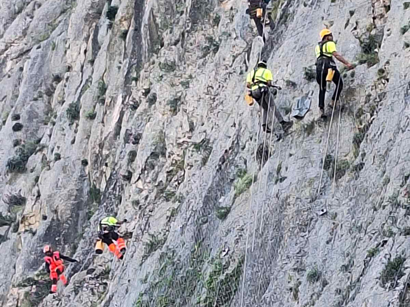 Στη σημερινή επιχείρηση πήρε μέρος ειδικά εξοπλισμένο ελικόπτερο για τη μεταφορά των υλικών καθώς και ειδικά εκπαιδευμένο προσωπικό για την τοποθέτηση πλέγματος στον ορεινό όγκο, ώστε να αποκλειστεί κάθε κίνδυνος από πτώση βράχων.