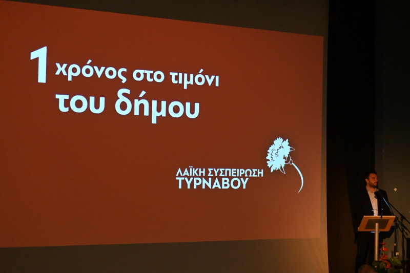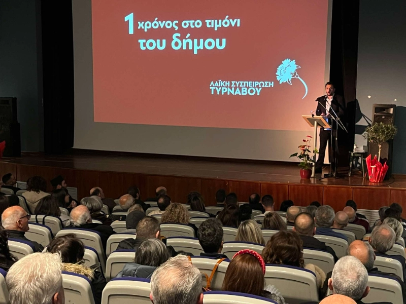 Μπροστά σε ένα κατάμεστο ΜΑΧΙΜ, με τη μαζική συμμετοχή δημοτών, ο Δήμαρχος Τυρνάβου, Στέλιος Τσικριτσής, έκανε τον απολογισμό του πρώτου χρόνου της Λαϊκής Συσπείρωσης στη διοίκηση του Δήμου. Σε μια δυναμική και συγκινησιακά φορτισμένη ομιλία, ο Δήμαρχος αναφέρθηκε στις προκλήσεις, στα εμπόδια που ξεπεράστηκαν, αλλά και στο έργο που συντελέστηκε για την αναβάθμιση της καθημερινότητας των δημοτών.