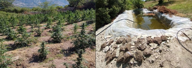 Ως προς τον χώρο των φυτειών, υπήρχε πλήρες δίκτυο άρδευσης, σκαπτικά εργαλεία, αυτοσχέδια δεξαμενή συλλογής υδάτων, ενώ παράλληλα, εντοπίστηκε αυτοσχέδιο κατάλυμα με διάφορα είδη διαμονής, ρουχισμό και μαγειρικά σκεύη. Επίσης, σε κοντινή απόσταση εντοπίστηκε αυτοσχέδιο υπό κατασκευή ξηραντήριο.
