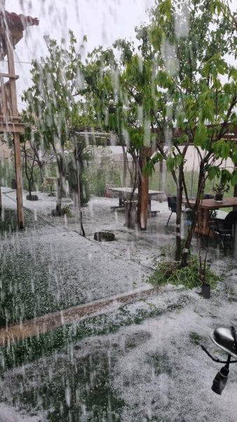 Όπως φαίνεται και στο βίντεο πολίτη, η χαλαζόπτωση είναι ιδιαίτερα έντονη και συνοδεύτηκε από έντονους ανέμους.