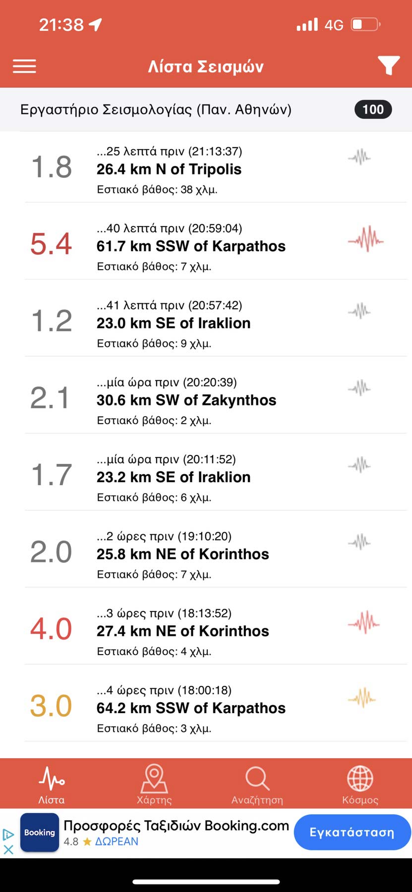 Έντονη σεισμική ακολουθία σε διάφορες περιοχές της Ελλάδας τις τελευταίες ώρες