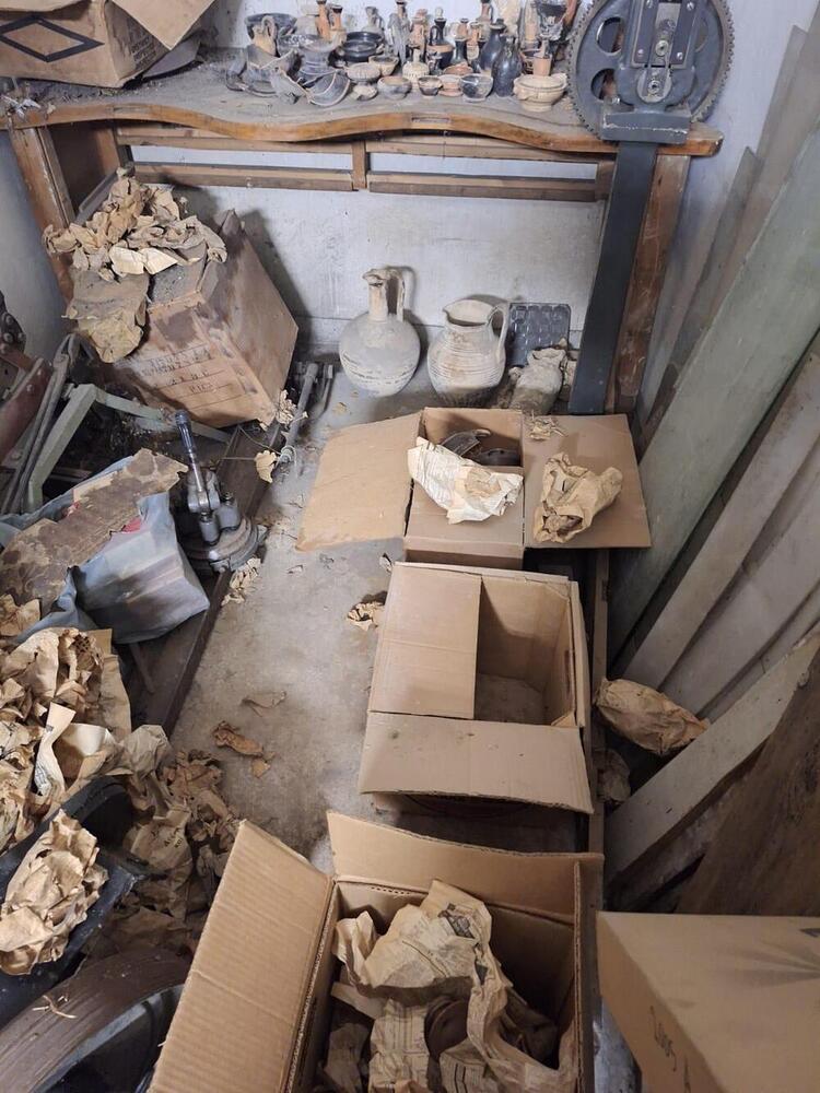 Κατά τον εντοπισμό των αρχαίων αντικειμένων τον Φεβρουάριο του 2024, ο αρμόδιος εκπρόσωπος της Εθνικής Πινακοθήκης – Μουσείου Αλέξανδρου Σούτσου (ΕΠΜΑΣ) ενημέρωσε άμεσα το Υπουργείο Πολιτισμού για τα ευρήματα. Αρχαιολόγοι από τη Διεύθυνση Τεκμηρίωσης και Προστασίας Πολιτιστικών Αγαθών (ΔΤΠΠΑ) και το Νομισματικό Μουσείο πραγματοποίησαν αυτοψία στον χώρο. Εντοπίστηκαν και καταγράφηκαν 102 αρχαία αντικείμενα που χρονολογούνται στους γεωμετρικούς μέχρι τους ελληνιστικούς χρόνους (κύλικες, κάνθαροι, λεκανίδες, λήκυθοι, σκύφοι, ειδώλια κ.α.), 36 αντικείμενα θρησκευτικού χαρακτήρα μεταβυζαντινών χρόνων (εικόνες, ασημένιες επενδύσεις, αρχιερατική ράβδος και άλλα εκκλησιαστικά αντικείμενα), καθώς και 3.247 νομίσματα, μετάλλια, σφραγιδόλιθοι, σταθμία, μολυβδόβουλα που χρονολογούνται από τους αρχαίους έως τους νεώτερους χρόνους.