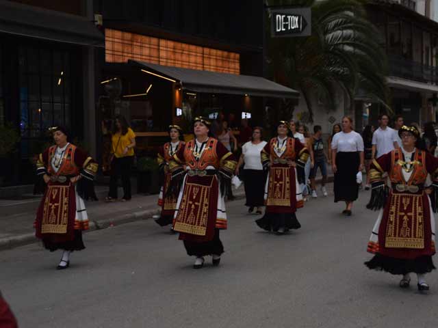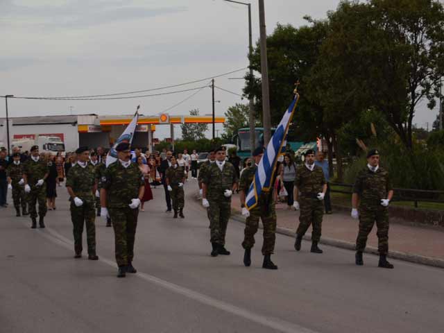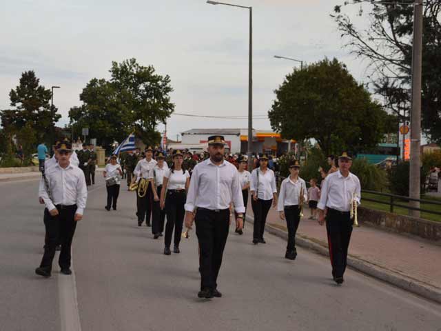 Η Φιλαρμονική του Δήμου Τυρνάβου με συγκλονιστική παρουσία ξεκίνησε παιανίζοντας εμβατήρια νίκης και ακολούθησε τμήμα των Εφέδρων Αξιωματικών Νομού Λάρισας σε διάταξη αγήματος με την Ελληνική σημαία.