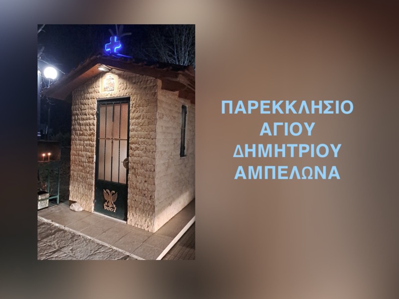 Η Ενορία των Αγίων Κωνσταντίνου και Ελένης στον Αμπελώνα ανακοίνωσε το πρόγραμμα για τον εορτασμό του Παρεκκλησίου του Αγίου Δημητρίου, προσκαλώντας όλους τους πιστούς να συμμετάσχουν.