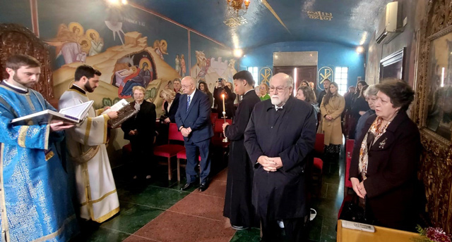 Συλλειτούργησαν ο Γενικός Αρχιερατικός Επίτροπος, Πρωτοπρεσβύτερος κ. Κων/νος Γαριβαλδινός, ο Πρωτοπρεσβύτερος π. Μύροσλαβ Pushkaruk, Ιερατικώς Προϊστάμενος της Ουκρανικής ενορίας της Ι. Αρχιεπισκοπής και διακονήσαν ο Αρχιδιάκονος κ. Γεώργιος Τσουρούς και ο Διάκονος κ. Stephen Ireland.