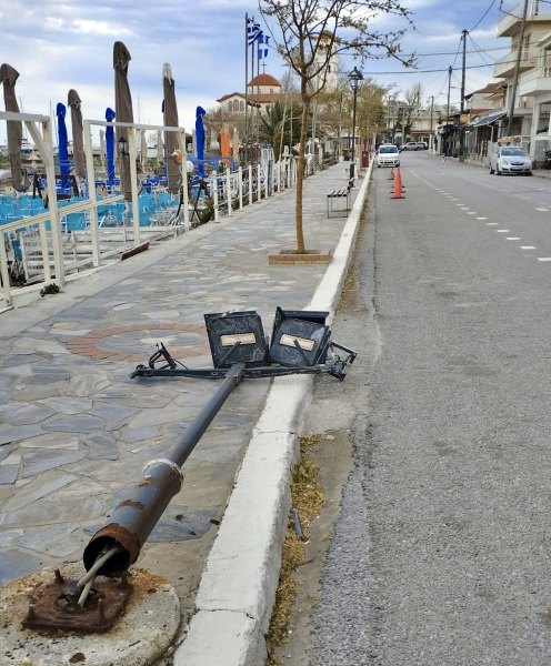 Έπεσαν κολώνες φωτισμού από τον αέρα στον Πλαταμώνα