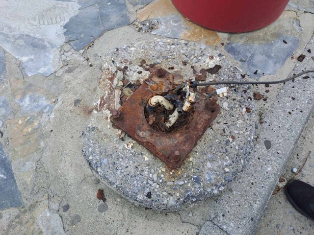 Όπως θα δείτε, στις φωτογραφίες οι κολώνες είναι σκουριασμένες και με το δυνατό αέρα είχαν σαν αποτέλεσμα να πέσουν στο οδόστρωμα χωρίς να υπάρξει κάποιο ατύχημα.