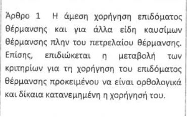 Σύμφωνα με την τροπολογία το επίδομα θέρμανσης δεν δίνεται σε όσους χρησιμοποιούν μόνο πετρέλαιο, αλλά και σε όσους χρησιμοποιούν για τη θέρμανσή τους φυσικό αέριο, υγραέριο και ξύλα ή πέλετ.