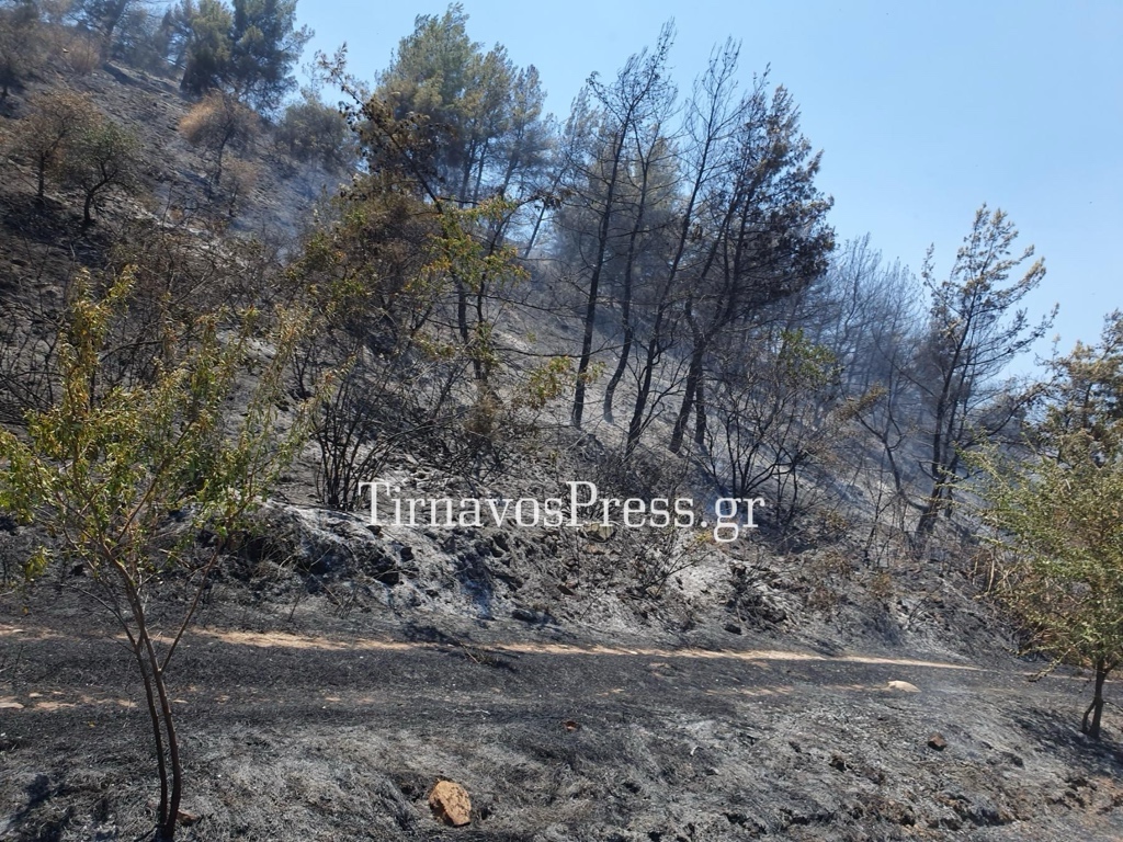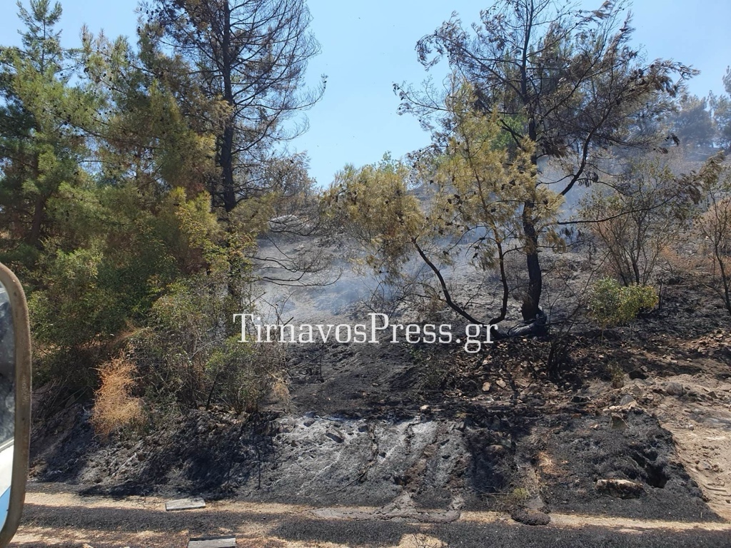 Η φωτιά έχει κάψει πολλά στρέμματα ενώ επιχειρούν στο σημείο πυροσβεστικά οχήματα, υδροφόρα και χωματουργικα του Δήμου Τυρνάβου αλλά και του Δήμου Λαρισαίων καθώς και εναέρια μέσα.