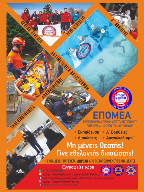 Επίλεκτη Ομάδα Ειδικών Αποστολών – Γίνε εθελοντής διασώστης στην ΕΠΟΜΕΑ Τυρνάβου