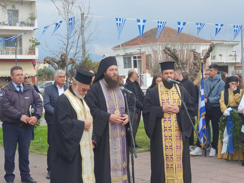 Αρχικά τελέστηκε επιμνημόσυνη δέηση και μνημόσυνο πεσόντων συμπολιτών μας. Ακολούθησε η κατάθεση των στεφάνων από τους μαθητές και στη συνέχεια τηρήθηκε ενός λεπτού σιγή προς τιμήν των θυμάτων του πολέμου.