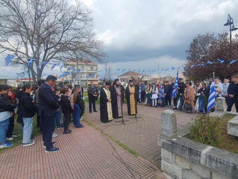 Με κάθε επισημότητα στο πλαίσιο των εκδηλώσεων για τον εορτασμό της Εθνική Επέτειο της 25ης Μαρτίου 1821, πραγματοποιήθηκε σήμερα η επιμνημόσυνη δέηση και η κατάθεση στεφάνων στο Ηρώο των πεσόντων στο πάρκο της Τούμπας από αντιπροσωπείες μαθητών των σχολείων όλων των βαθμίδων του Τυρνάβου.