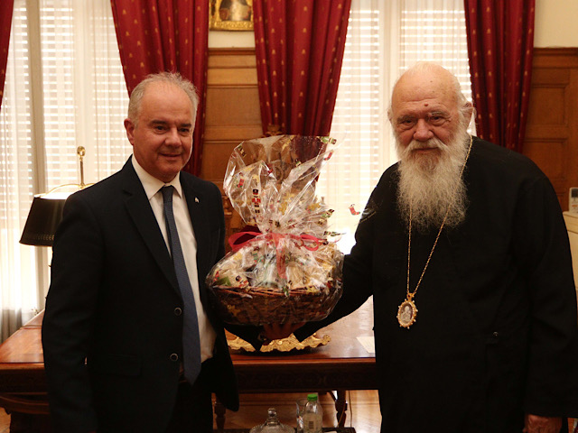“Ευχαριστώ τον Μακαριώτατο για τη θερμή υποδοχή και τη συνάντηση, καθώς και για τις ευχές που δέχτηκα για υγιή και δημιουργική θητεία.