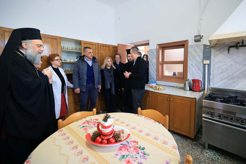 Ακολούθως, ο Περιφερειάρχης επισκέφθηκε το Γηροκομείο Τρικάλων, το οποίο λειτουργεί υπό την αιγίδα της Ιεράς Μητροπόλεως. Μαζί με τον Σεβασμιότατο Μητροπολίτη Τρίκκης Χρυσόστομο, συναντήθηκε με τους ηλικιωμένους που φιλοξενούνται εκεί, άκουσε τις προσωπικές τους ιστορίες, μοίρασε δώρα  και  αντάλλαξε ευχές.