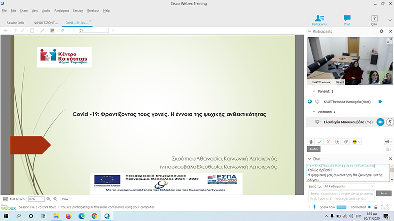 Με επιτυχία ολοκληρώθηκε η Διαδικτυακή Ομιλία που διοργάνωσε το Κέντρο Κοινότητας του Δήμου Τυρνάβου σε συνεργασία με το Κέντρο Άμεσης Κοινωνικής και Ιατρικής Επέμβασης Θεσσαλίας – «Το Χαμόγελο του Παιδιού» με θέμα: