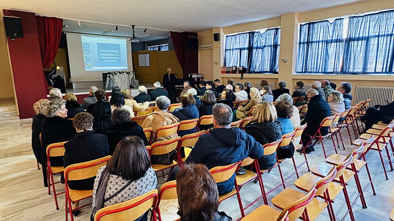 Ακολούθησε ομιλία με θέμα: ΄Καρκίνος. Ενημερώνομαι – Προλαμβάνω¨ με αφορμή την Παγκόσμια ημέρα κατά του Καρκίνου από τον καθηγητή Παθολογίας – Αιματολογίας της Ιατρικής Σχολής του Πανεπιστημίου Θεσσαλίας κ. Βασιλόπουλο Γιώργο ο οποίος δίνοντας ένα μήνυμα αισιοδοξίας τόνισε ότι: ¨Ο καρκίνος δεν σκοτώνει, δεν ξορκίζεται, δεν τρομάζει με το ξύλο, δεν είναι ύπουλος, αλλά δεν είναι και φίλος ενώ αντίθετα είναι κάτι που συμβαίνει σε πολλούς, είναι διαχειρίσιμη νόσος, πολύ συχνά προλαμβάνεται, είναι κομμάτι της ζωής μας και είναι ο ¨κακός¨ εαυτός μας¨. Για την πρόληψη ανέφερε ότι οι κυρίες θα πρέπει να κάνουν: α) Μαστογραφία β) Τεστ Παπανικολάου (ΠΑΠ) και γ) Κολονοσκόπηση ενώ οι κύριοι θα πρέπει να κάνουν: α) έλεγχο προστάτη β) Κολονοσκόπηση. Όλοι μας θα πρέπει να πούμε ΟΧΙ σε παχυσαρκία και κάπνισμα, να έχουμε μέτρο στο ΑΛΚΟΟΛ, να έχουμε σωματική δραστηριότητα και να κάνουμε γενικές εξετάσεις κάθε εξάμηνο. Μετά το τέλος της ομιλίας του, ο κ Βασιλόπουλος απάντησε σε πληθώρα ερωτήσεων που διατυπώθηκαν από τους παρευρισκόμενους. Ο πρόεδρος του συλλόγου ευχαρίστησε τον κ Βασιλόπουλο για την παρουσίαση του και τις απαντήσεις στους παρευρισκόμενους.