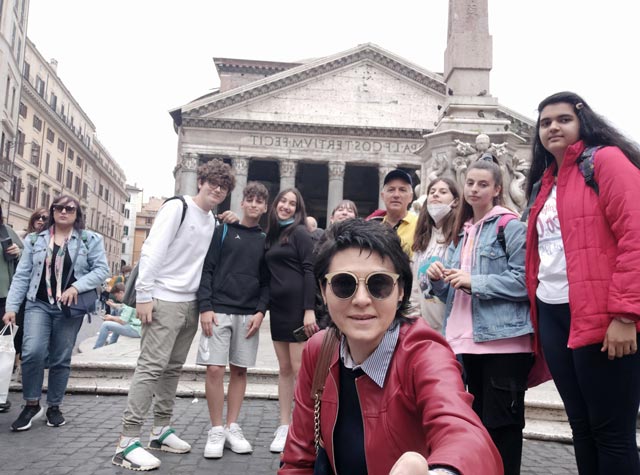 4η και τελευταία μέρα στην Ρώμη οι μαθητές μας είχαν την ευκαιρία να ξεναγηθούν στην “Αιώνια Πόλη” με τα μουσεία, τις πλατείες και τα ρωμαϊκά ορόσημα. Επισκέφθηκαν το Κολοσσαίο, το Καπιτώλιο ,το Μνημείο του Vittorio Emanuele (Bωμός της πατρίδας), την Πιάτσα Βενέτσια, την Φοντάνα Ντι Τρέβι, την πιάτσα Ντι Σπάνια με τα περίφημα σκαλοπάτια της, την πιάτσα Ναβόνο, την πιάτσα del Πόπολο με τον Αιγυπτιακό οβελίσκο του Σερί Σκάι τις δίδυμες εκκλησίες καθώς και την εκκλησία Σάντα Μαρία ντελ Πόπολο όπου θαύμασαν πίνακες του διάσημου ζωγράφου Καραβάτζιο (Η Σταύρωση του Αγίου Πέτρου). Τελική επίσκεψη το Πάνθεον με τον μεγαλύτερο θόλο της αρχαιότητας. Ταξίδι αξέχαστο με πολλές εμπειρίες και δράσεις, με εξαιρετική φιλοξενία γονέων και με πραγματικούς φίλους. Τώρα η σειρά μας περιμένουμε όλες τις ομάδες στο σχολείο μας 9-14 Οκτώβρη με χαρά να τους ανταποδώσουμε όσα μας προσέφεραν.