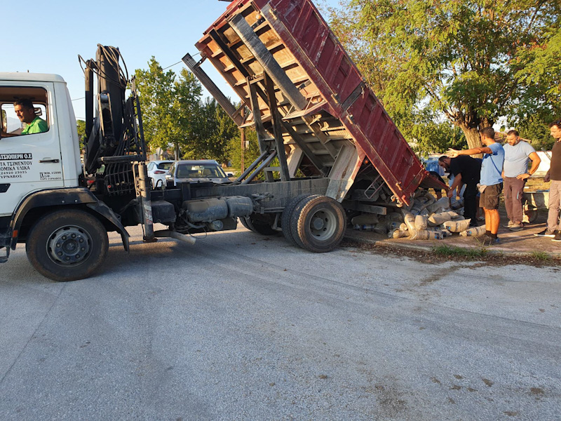 Η εταιρία Αφοί Κατσιοπέρη Ο.Ε πρόσφερε σακιά με άμμο στον Αμπελώνα