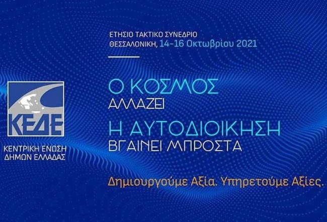 Στο Ετήσιο Τακτικό Συνέδριο της ΚΕΔΕ, που διεξάγεται από 14 έως 16 Οκτωβρίου στη Θεσσαλονίκη, συμμετέχει ο Δήμαρχος Τυρνάβου, Γιάννης Κόκουρας.