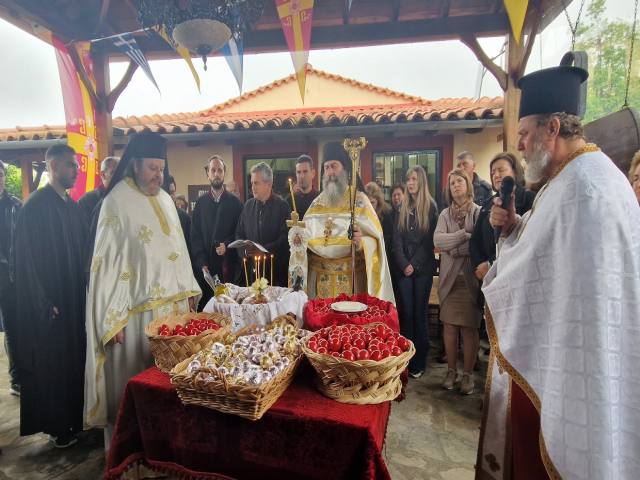 Στη συνέχεια, ευχήθηκε στον Καθηγούμενο της Ιεράς Μονής, Αρχιμανδρίτη π. Ραφαήλ για την ονομαστική του εορτή, καθώς και τους πατέρες, αλλά και τους πολυπληθείς προσκυνητές που έφτασαν στον ευλογημένο και ιερό αυτό χώρο, προκειμένου να λάβουν έντονη την χάρη και την ευλογία των χαριτοβρύτων Αγίων.
