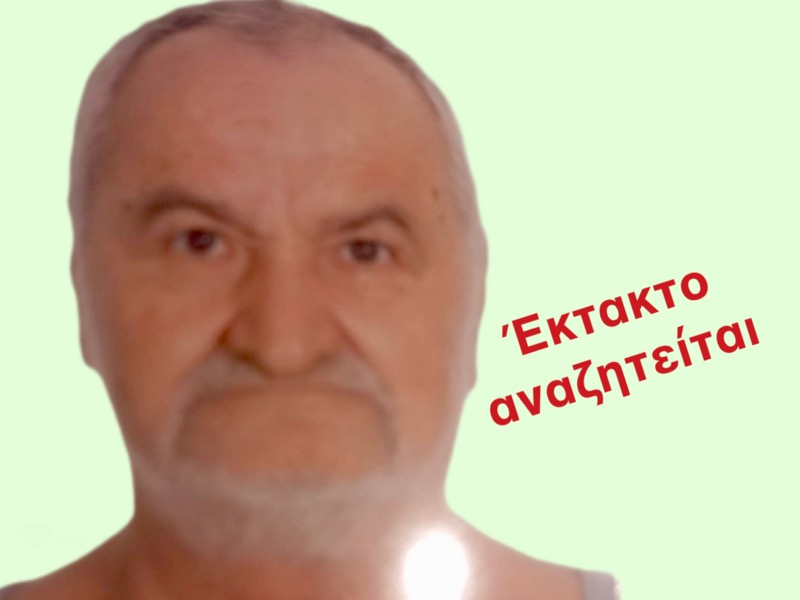 Πρόκειται για τον Κωσταντίνο Κωσταντινίδη 72 ετών. Όταν εξαφανίστηκε φορούσε αθλητική φόρμα και ζακέτα γκρι χρώματος και μπλούζα γκρι με λευκές ρίγες. Οδηγούσε μηχανάκι με πινακίδες ΡΡΙ 776.