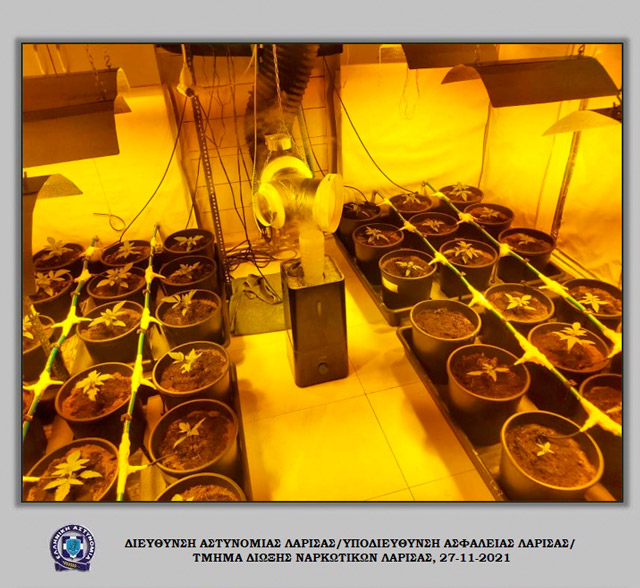 Σε δωμάτιο οικίας -2- εκ των συλληφθέντων εντοπίστηκε πλήρης υδροπονική καλλιέργεια κάνναβης με -35- δενδρύλλια κάνναβης μέσα σε γλάστρες