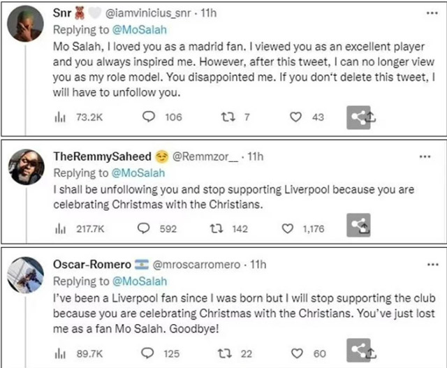 Αρνητικά σχόλια πολλών Μουσουλμάνων προκάλεσε η ανάρτηση του Αιγύπτιου επιθετικού της Λίβερπουλ, Μοχάμεντ Σαλάχ, στο Instagram με την οποία ευχήθηκε «Καλά Χριστούγεννα».