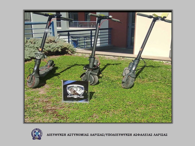 Εξιχνιάστηκαν -4- περιπτώσεις κλοπής ηλεκτρικών πατινιών που διαπράχθηκαν στην πόλη της Λάρισας