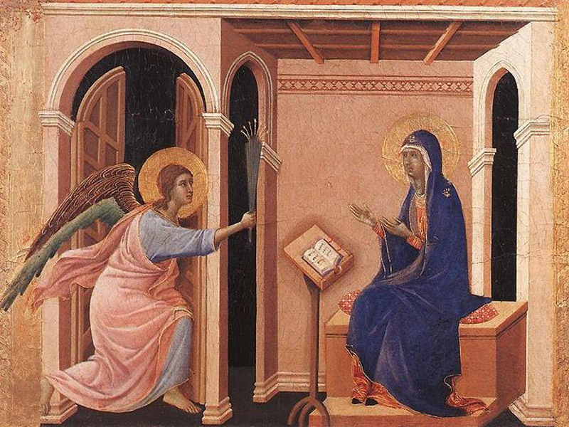 Και Όταν η Παρθένος αναρωτήθηκε πώς ήταν δυνατό να συλλάβει χωρίς άνδρα, ο αρχάγγελος της απάντησε ότι «το Άγιο Πνεύμα θα έλθει σε σένα και η δύναμη του Υψίστου θα σε επισκιάσει» Τότε η σεμνή κόρη, η Παρθένος Μαρία, του απάντησε ταπεινά. «Ιδού λοιπόν, η δούλη του Κυρίου. Ας γίνει το θέλημα Εκείνου». και καθώς ο Γαβριήλ εξαφανίστηκε από μπροστά της, συντελέστηκε το μεγαλύτερο μυστήριο της ανθρωπότητας. με τρόπο υπερφυσικό, η Παρθένος συνέλαβε στην άχραντη κοιλιά της, τον Υιό και Λόγο του Θεού.