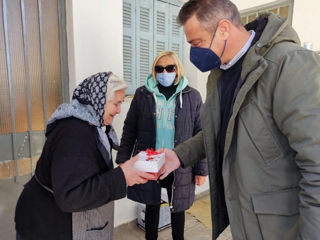 Ευχές και γλυκά σε ηλικιωμένους από τον πρόεδρο ΚΕΔΗΤ κ. Ανδρέα Γιαννόπουλο μαζί με την διευθύντρια Χατζησήση Ελένη